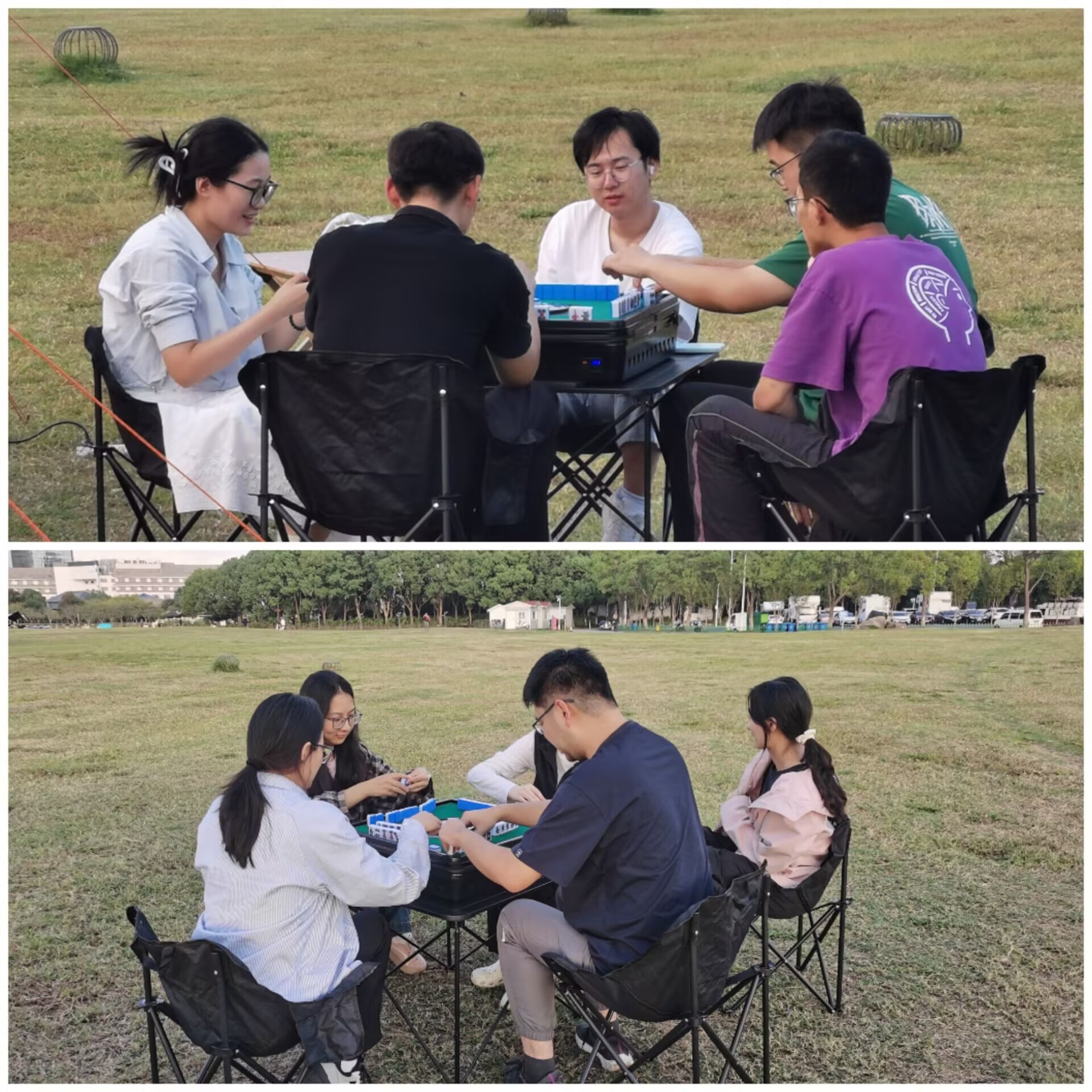 阳光正好,微风不燥。先抵达的同学们根据喜好,迅速投入到丰富多彩的自由活动中:金鸡湖面,皮划艇与桨板划开涟漪;临湖草坪上,麻将与掼蛋局悄然开场;更有同学静坐湖边,悠然垂钓,或只是单纯凝望落日,将湖光秋色尽收眼底。