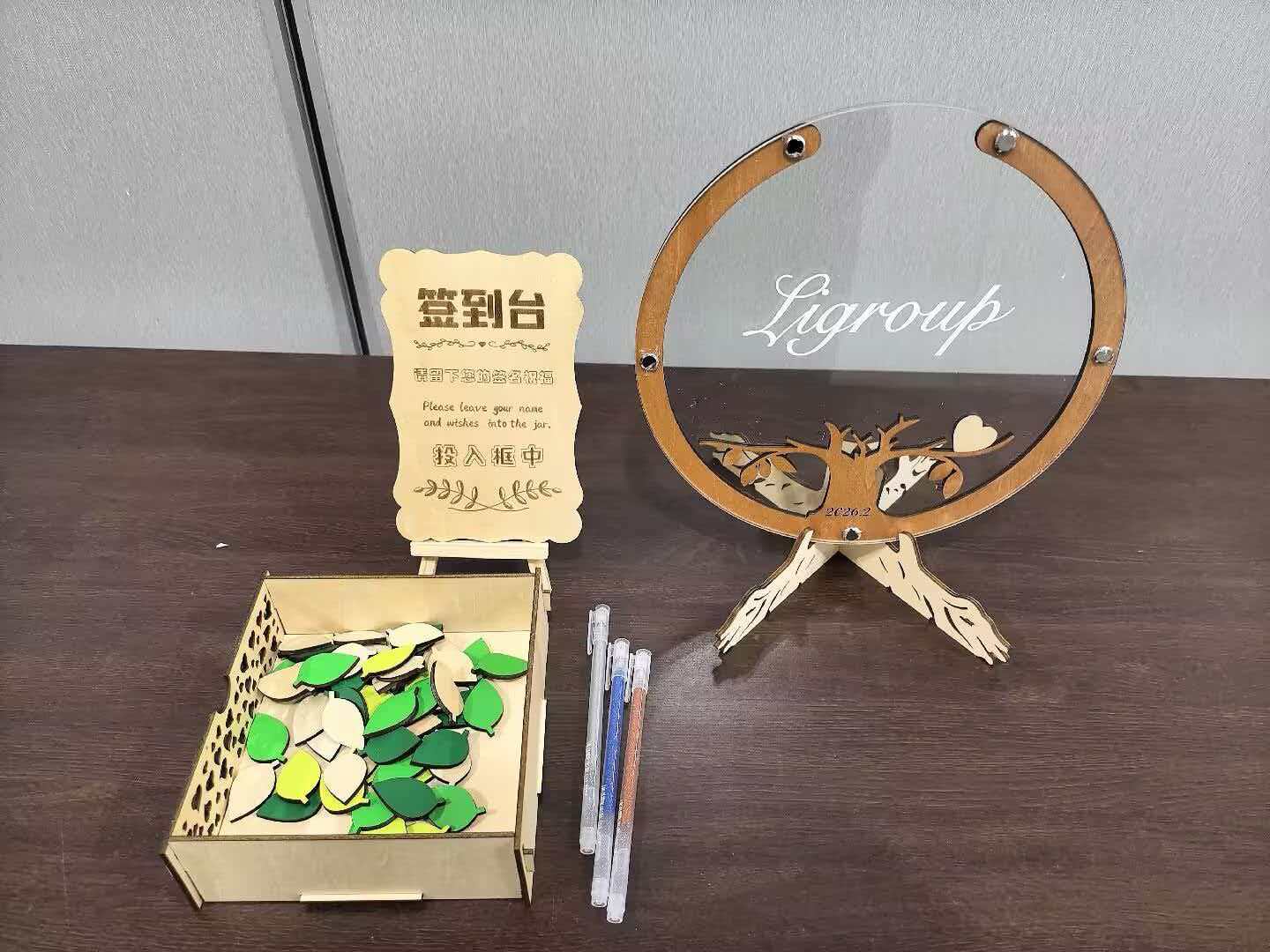 课题组定制树叶签名墙,以大树为喻,每位成员皆是一片绿叶,一笔一画皆是对团队的认同。
